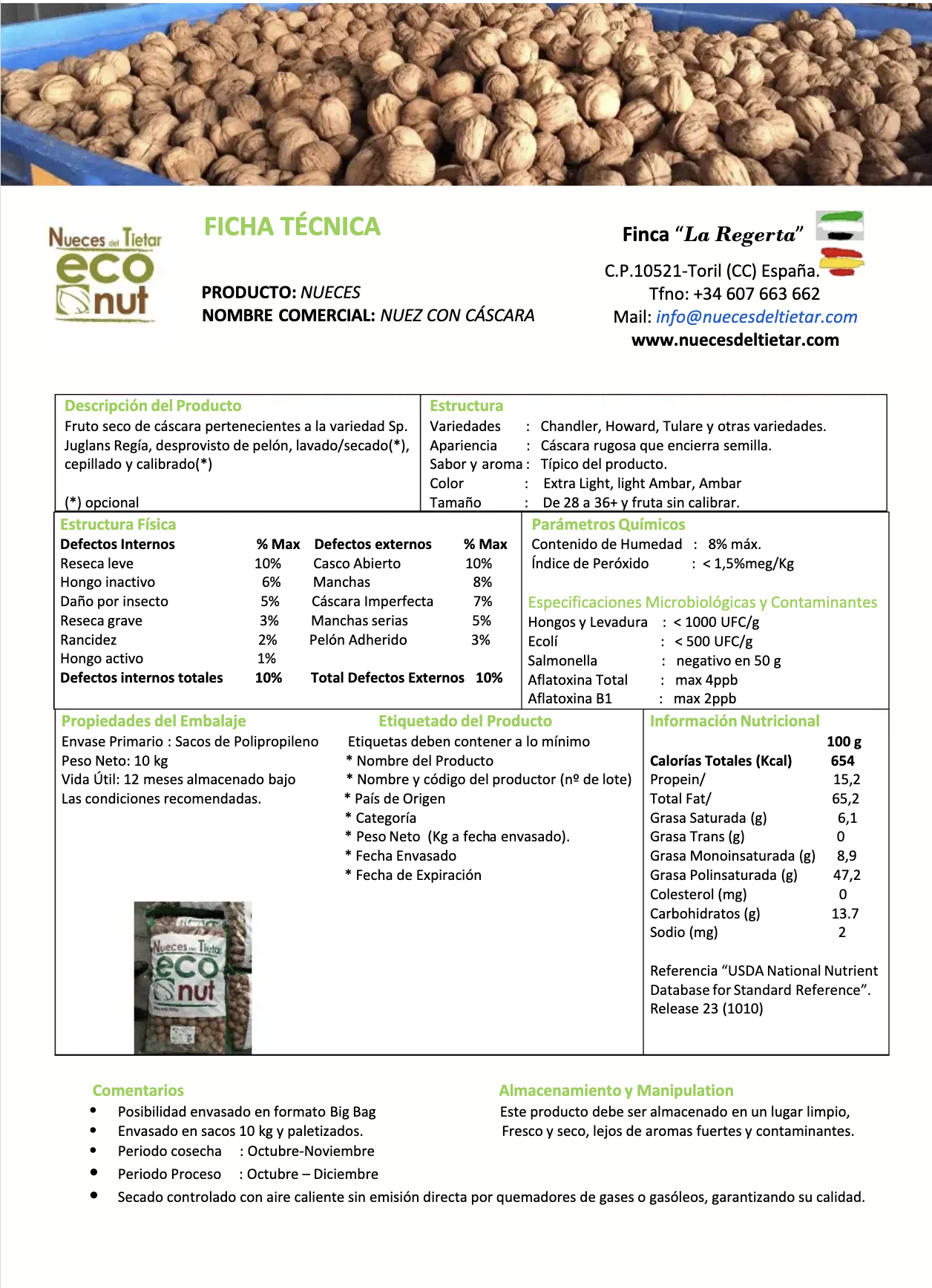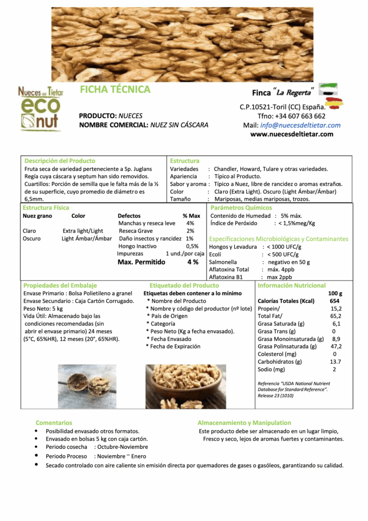 Cosecha a mitad de temporada. Fructificación de yemas laterales del 80 % al 90 %. La brotación ocurre 15 días después que la variedad Payne. Nuez grande, con buen sellado. Almendra con un 90 % de color claro. Árbol de tamaño pequeño a mediano, con porte semi-erecto. La nuez es susceptible a la bacteriosis debido a la brotación tardía. Los polinizadores son Scharsch Franquette o Cisco.